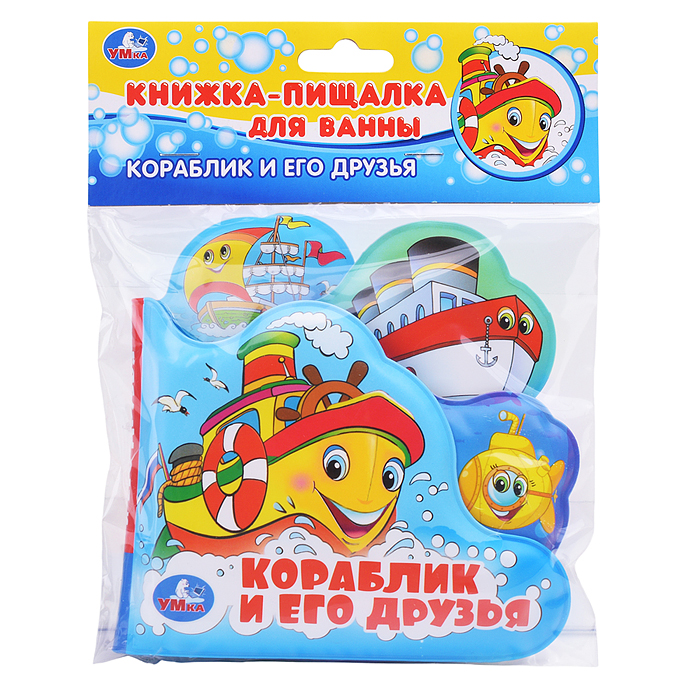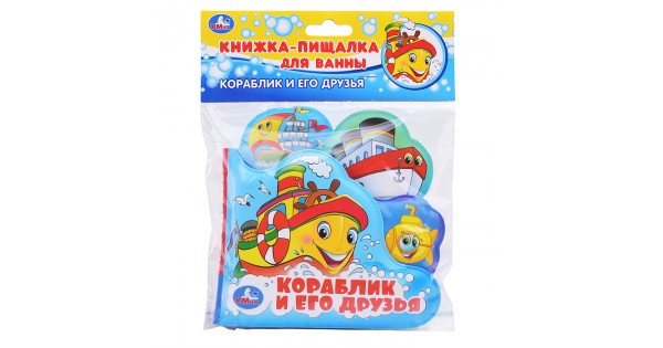 Книга-пищалка для ванны с закладками. Кораблик и его друзья. Формат: 14х14см 8стр
