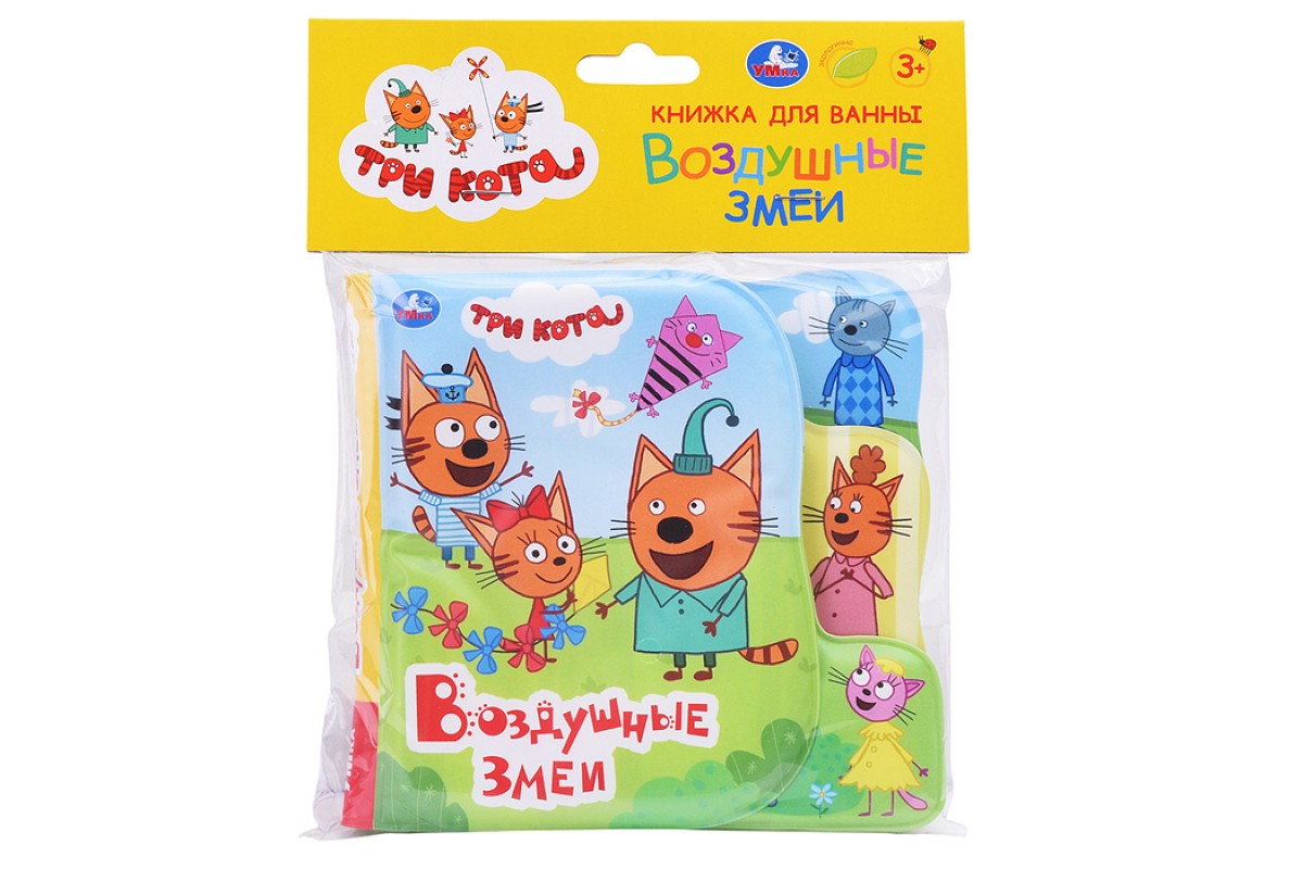Книга-пищалка для ванны с закладками. Три Кота. Воздушные змеи