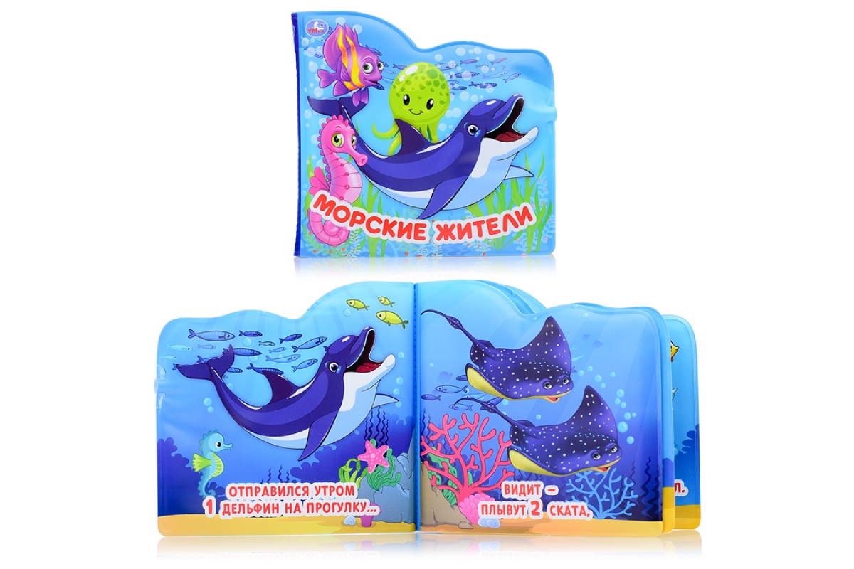 Книга с красочными изображениями морских животных обязательно заинтересует малыша. Вместе с такой книгой ребёнку будет весело и интересно играть и принимать ванну. Если нажать на страничку, она будет брызгать водой, чем развеселит малыша.