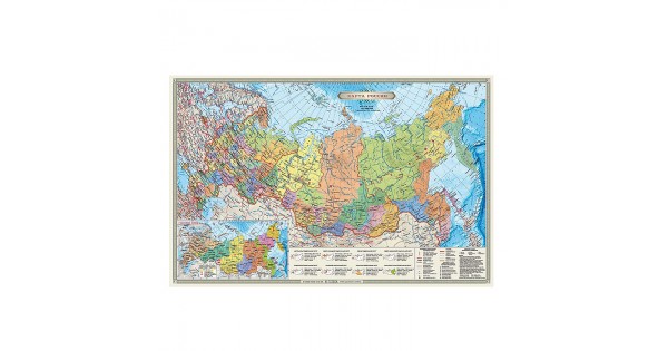 Карта Россия п/а с инфографикой, 58х38 см, двухсторонняя 1:14,5 млн, лам. с европодвесом