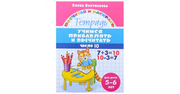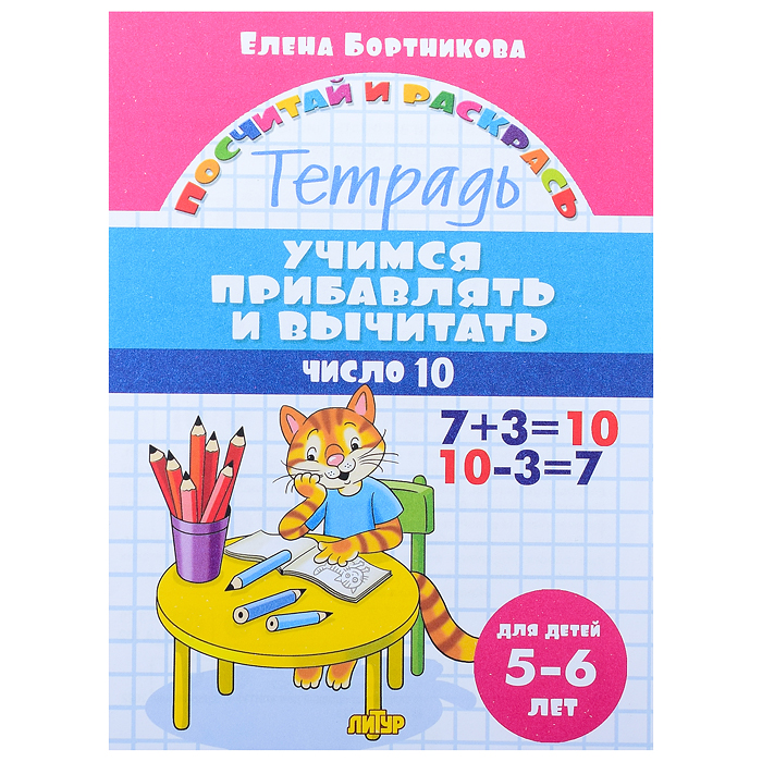 Посчитай и раскрсь. Учимся прибавлять и вычитать. Число 10. 5-6 лет. Бортникова