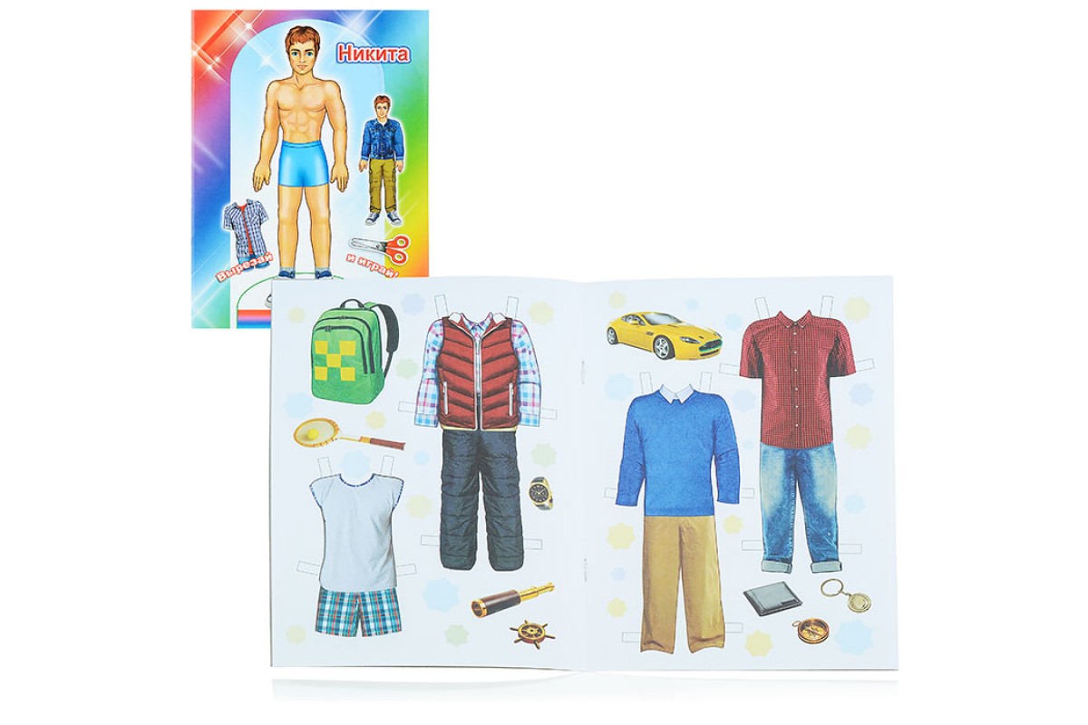 • Книга содержит бумажную куклу Никиту с разнообразной одеждой и аксессуарами.