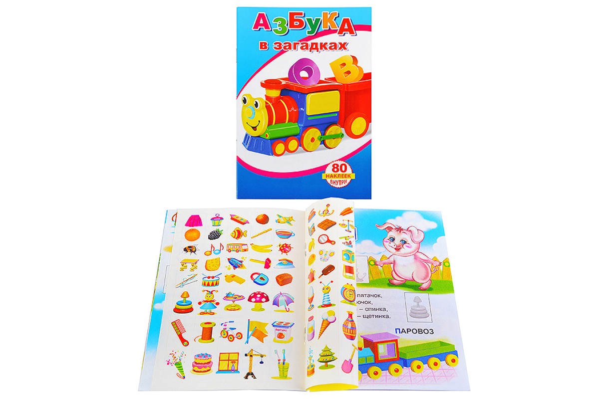 Книга с наклейками. Азбука в загадках 0+