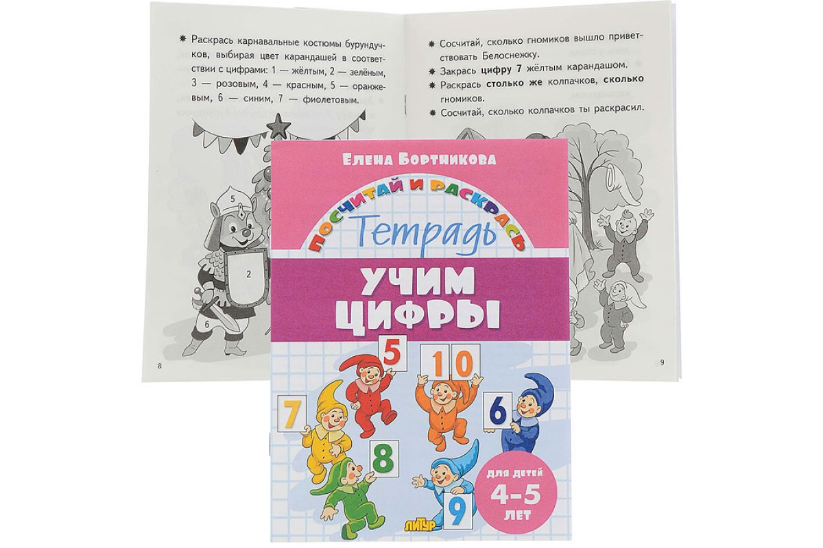 Посчитай и раскрась. Учим цифры 4-5 лет. Бортникова