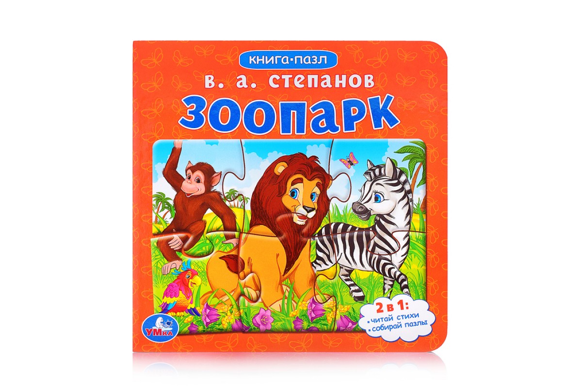 Зоопарк. Степанов В.А. Картонная книга с 5 пазлами. 2в1.