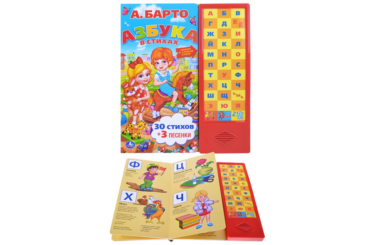 • 33 кнопочки: 30 кнопочек со стихами и 3 кнопочки с песенками.
