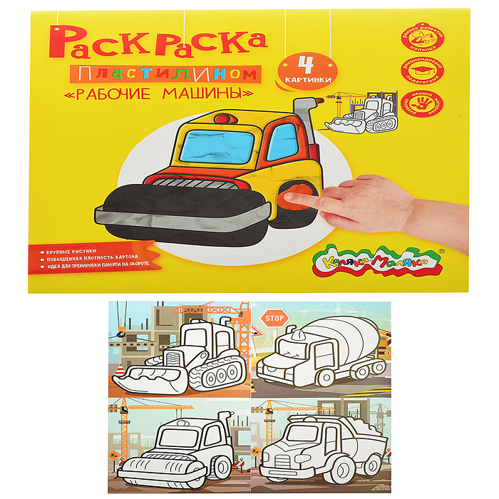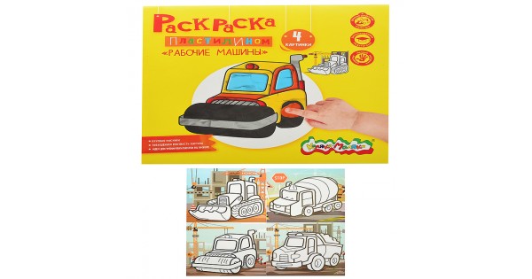 Раскраска пластилином "Рабочие машины" 4 карт. 200х200 мм в папке конверте
