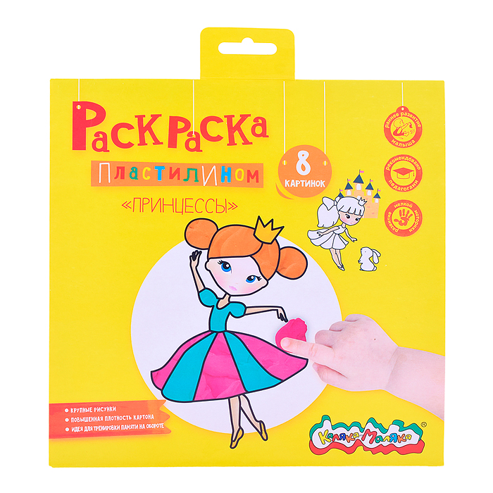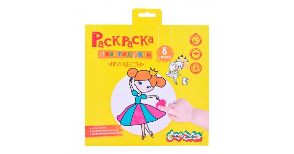 Раскраска пластилином "Принцессы" 8 карт. 200х200 мм в папке конверте