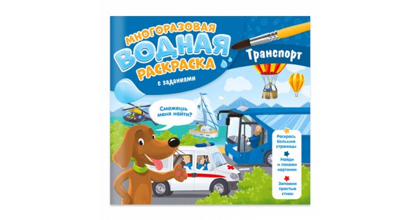 Многоразовая водная раскраска с заданиями. Транспорт. Серия Раскрась и узнай. 24х23 см.