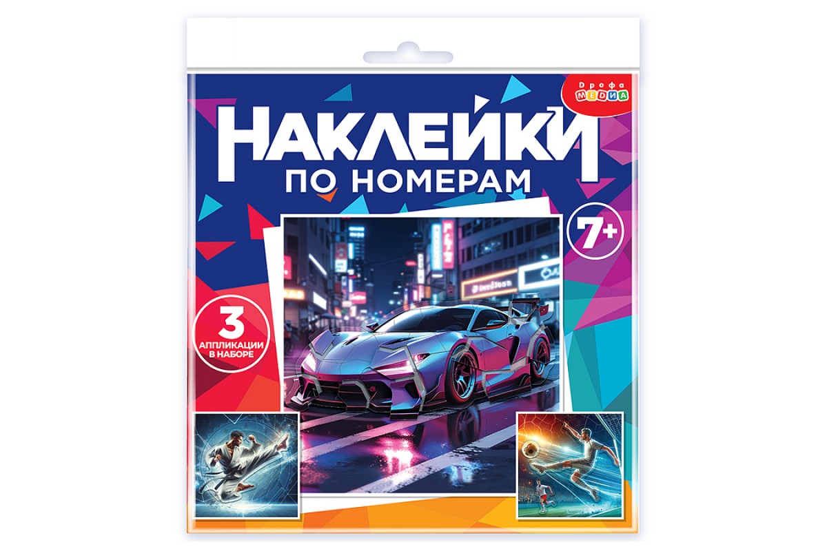 Аппликация наклейками по номерам. Футбол. Карате. Автомобиль