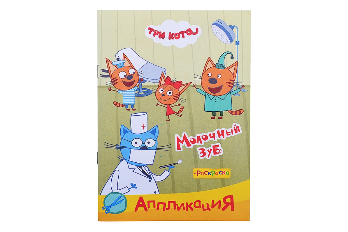 Книга раскраска, аппликация. Три Кота. Приклей-ка Молочный зуб