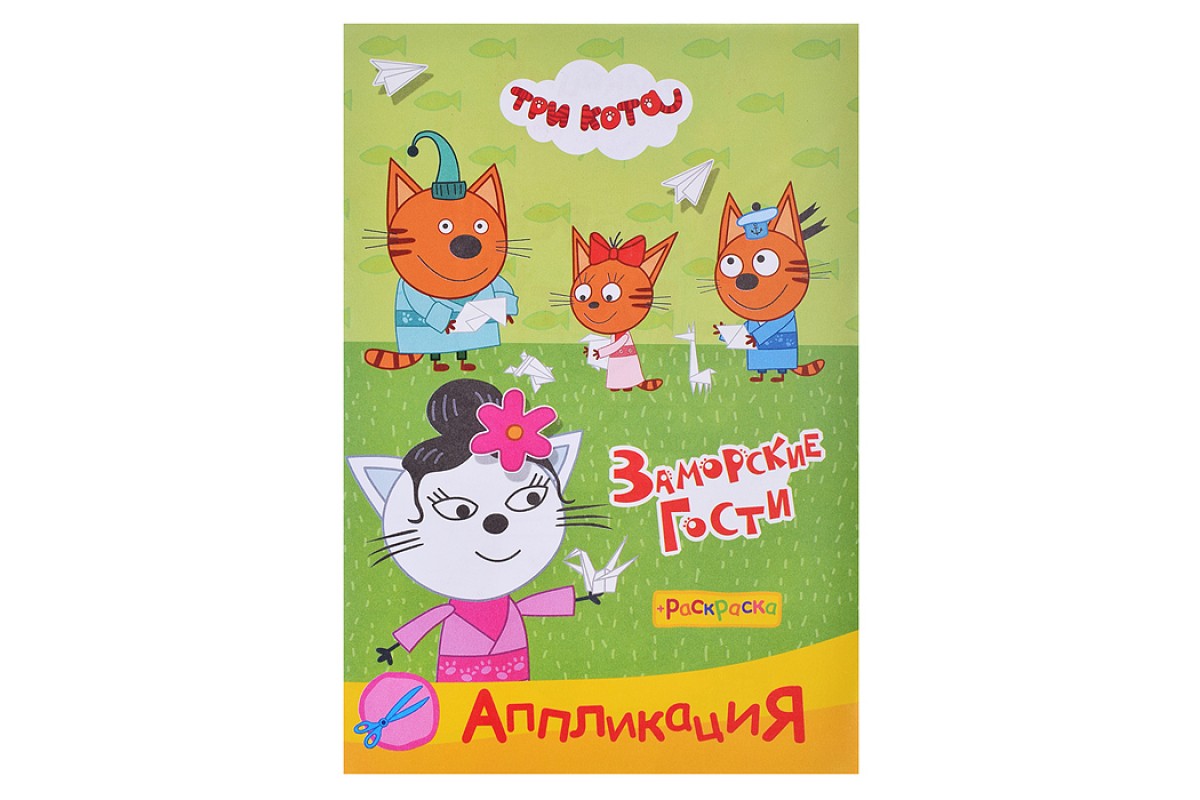 Книга раскраска, аппликация. Три Кота. Приклей-ка. Заморские гости