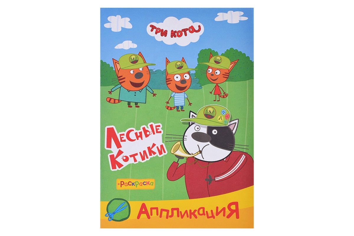 Книга раскраска, аппликация. Три Кота. Приклей-ка.Лесные котики