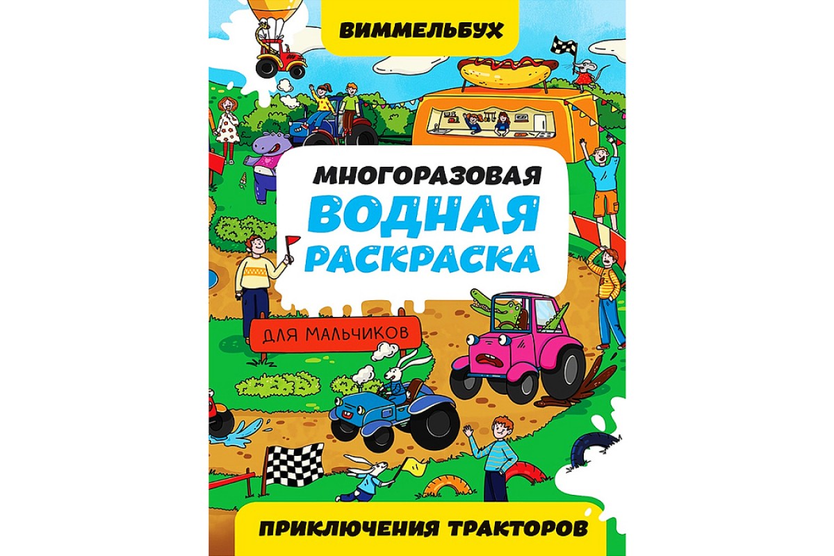 Многоразовая водная раскраска. Приключения тракторов. Виммельбух для мальчиков.