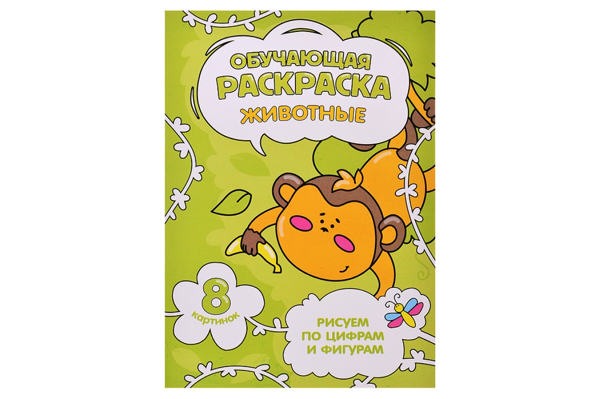 Обучающая раскраска по цифрам и фигурам. Животные. 14,8х21 см.