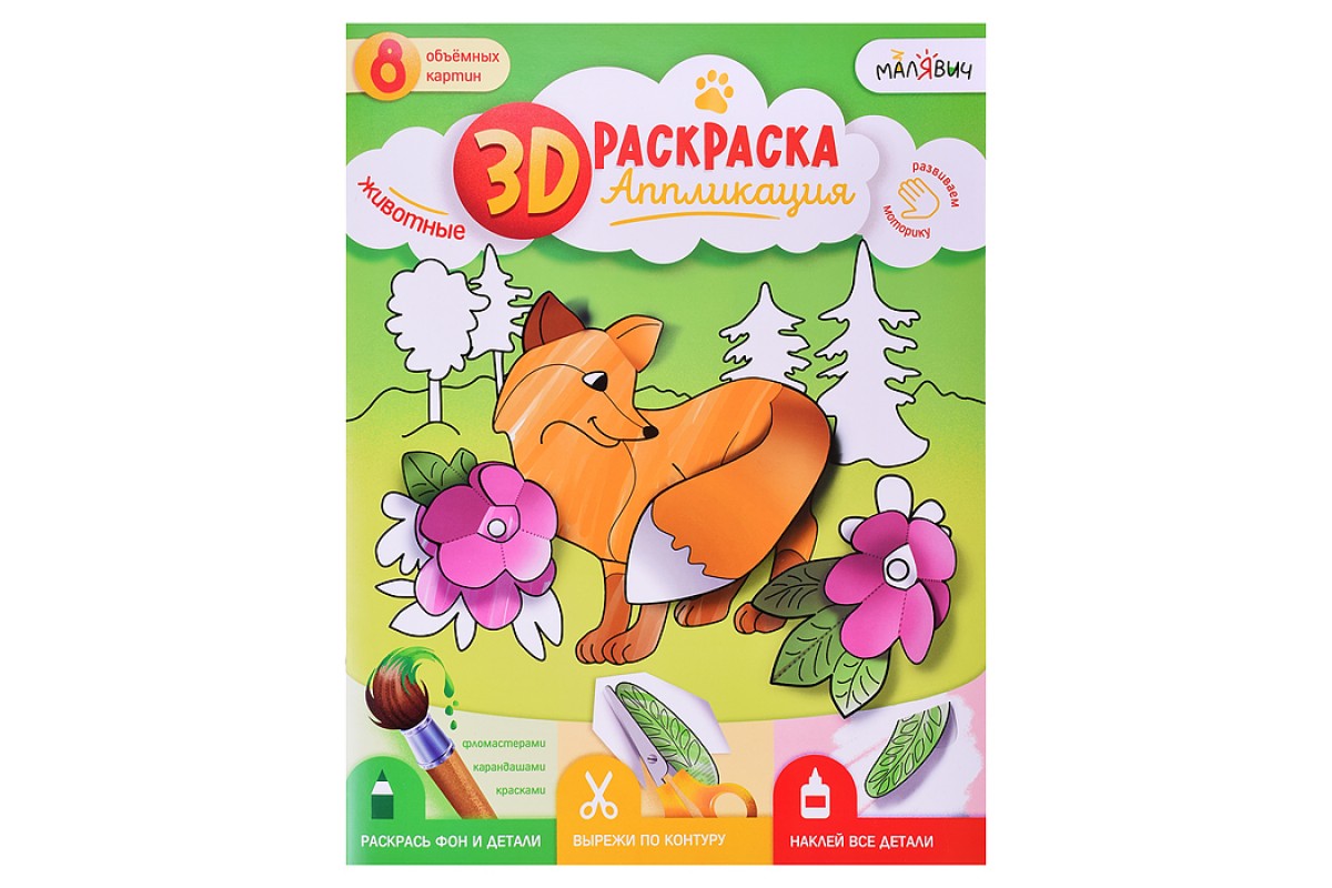 Раскраска-аппликация 3D. Животные. МалЯвич. 22х29 см.
