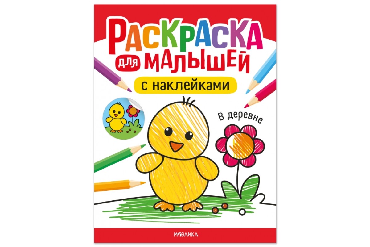 Раскраска для малышей с наклейками. В деревне