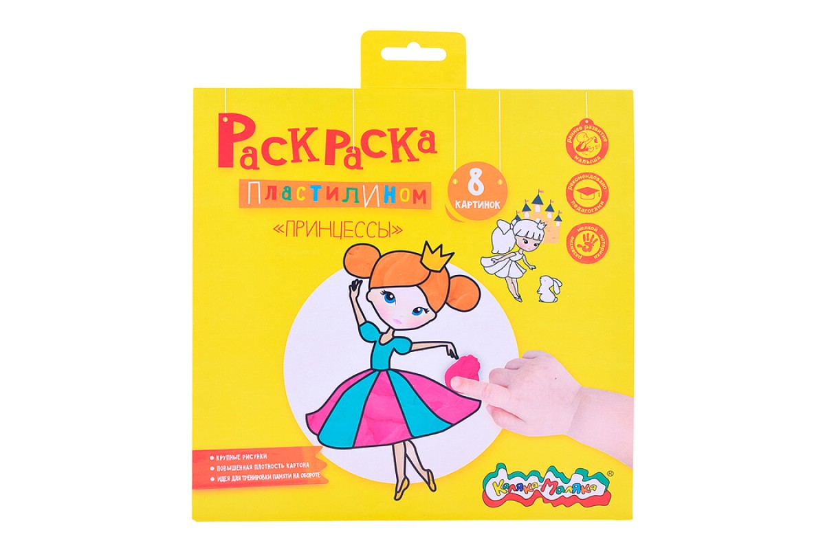 Раскраска пластилином "Принцессы" 8 карт. 200х200 мм в папке конверте