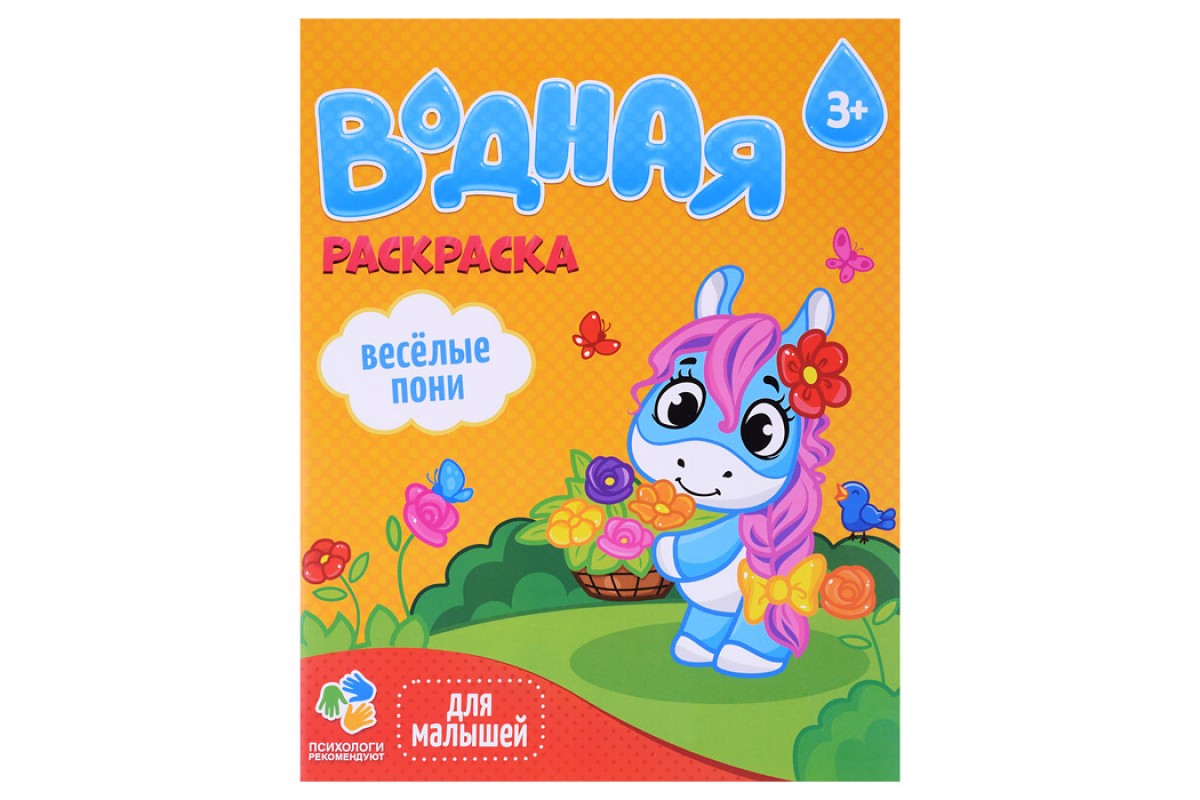 Раскраска водная для малышей. Веселые пони.