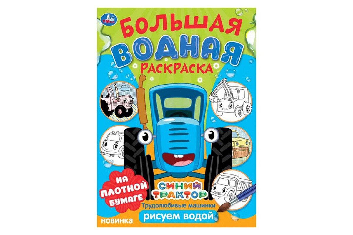 Трудолюбивые машинки. Синий трактор. Большая водная раскраска