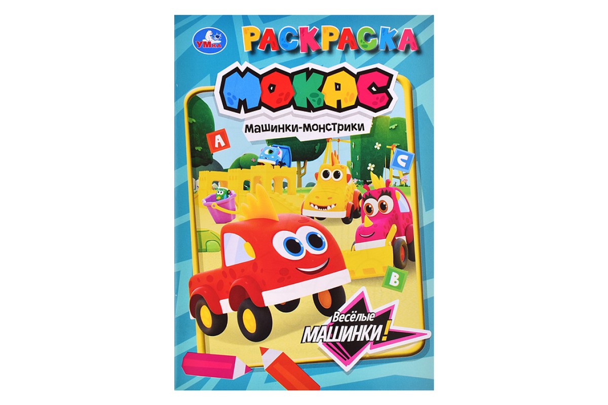 Весёлые машинки. Машинки Мокас. Раскраска. 145х210мм.
