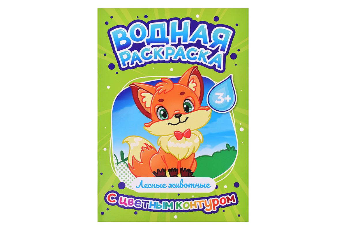 Водная раскраска с цветным контуром. Лесные животные