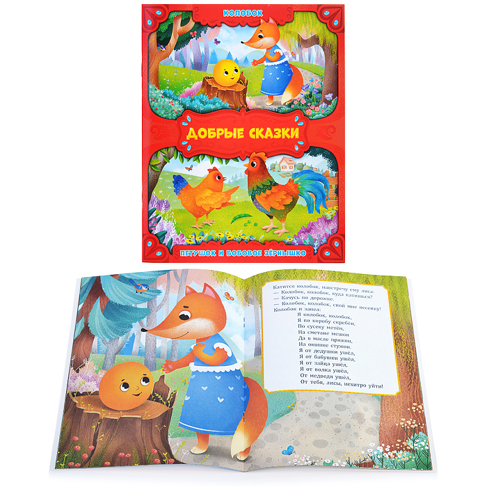 Книга. Колобок. Петушок и бобовое зернышко. Серия Добрые сказки. 16,8х21 см. 24 стр.