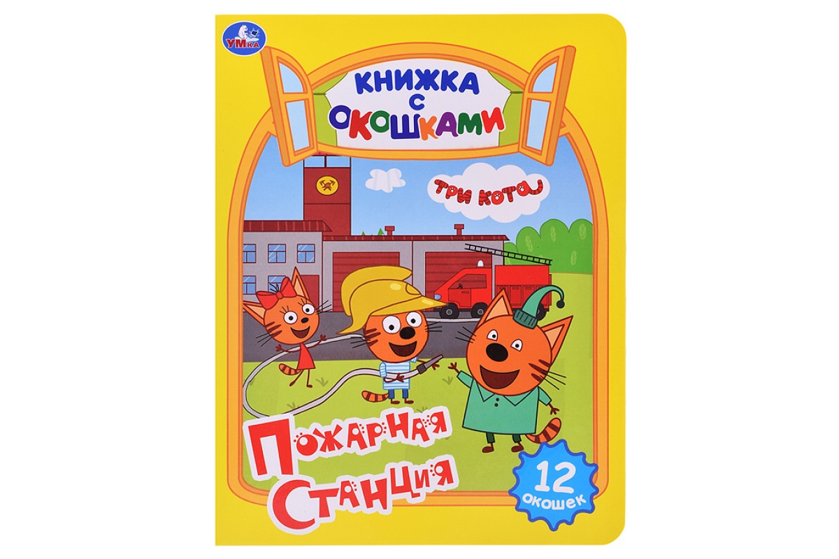 Картонная книжка с окошками. Пожарная станция. Три кота.