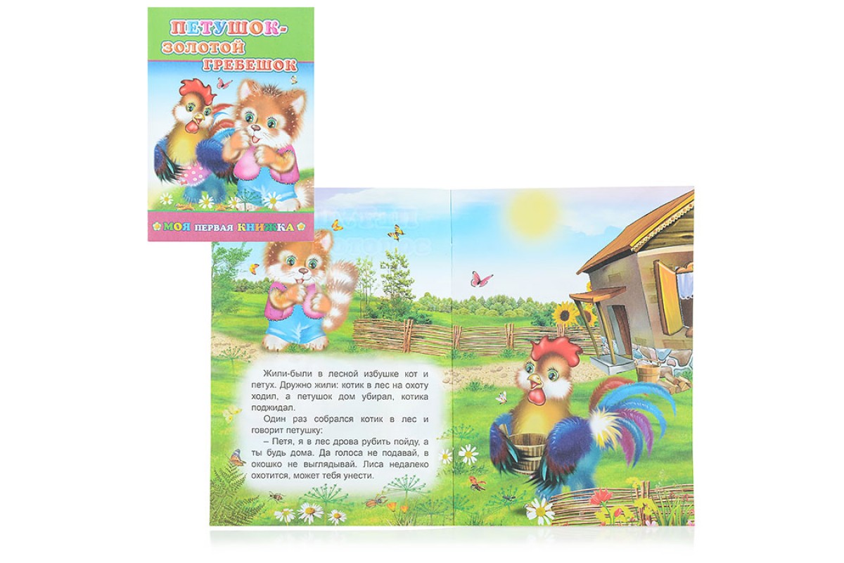 • В книге14 страниц с иллюстрациями и сказкой "Петушок-золотой гребешок",