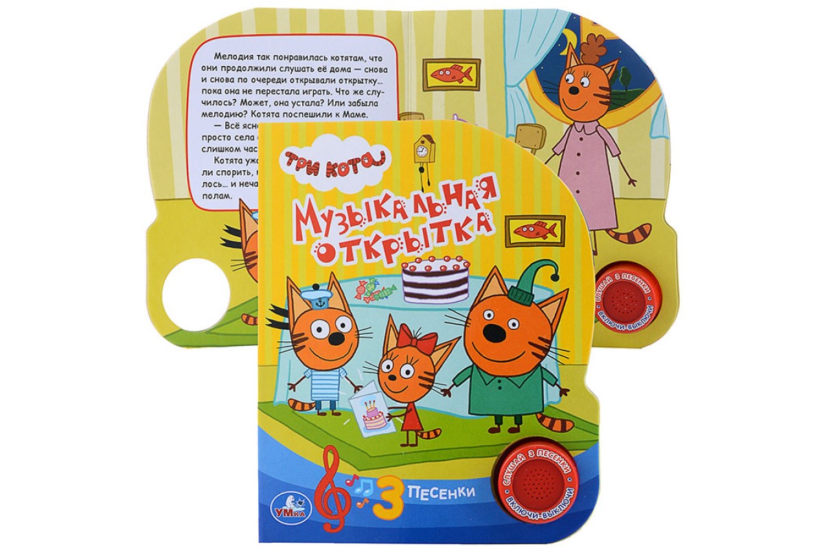 Три кота. Музыкальная открытка (1 кнопка, 3 песенки)