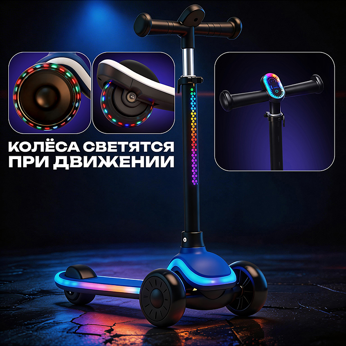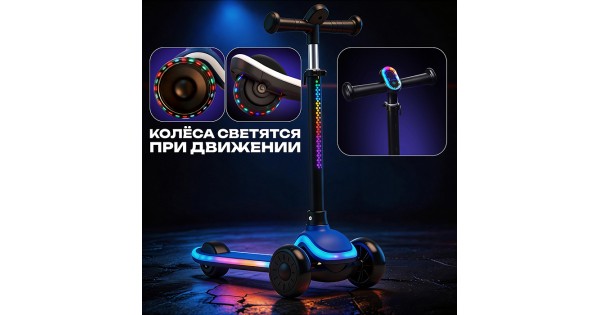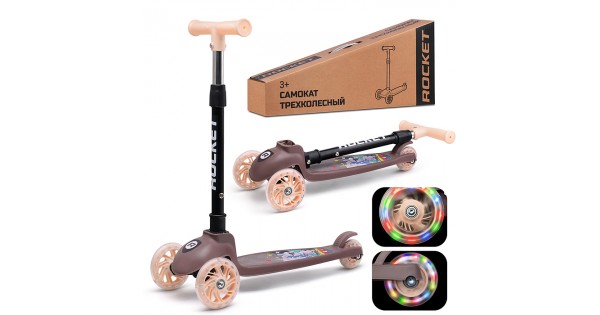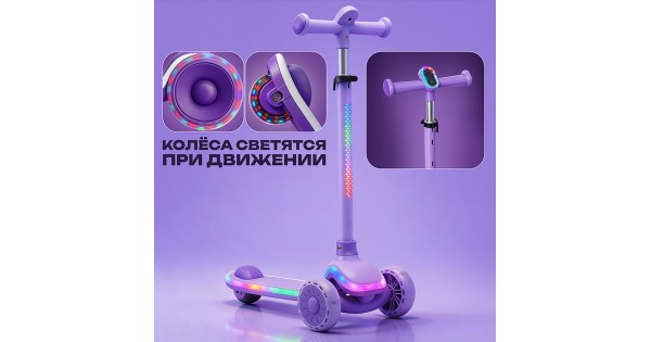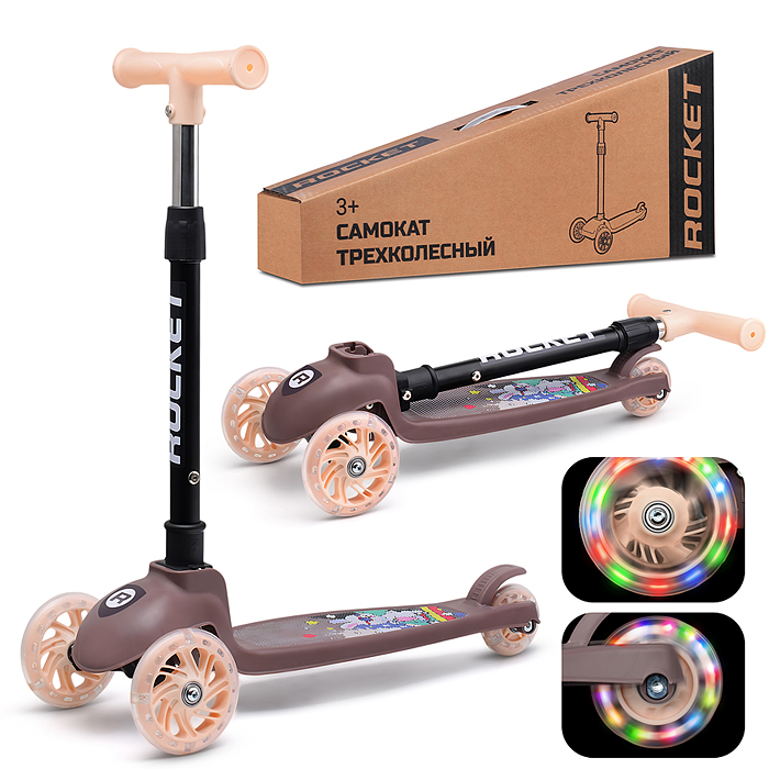 Самокат 3-х колесный ROCKET,колеса PU со светом, цвет фиолетовый