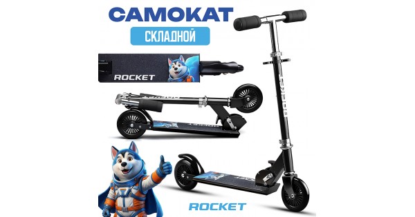 Самокат 2-х колесный ROCKET,колеса PU/ 125 мм, ABEC 7, черный (в пакете)