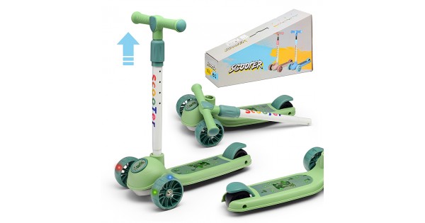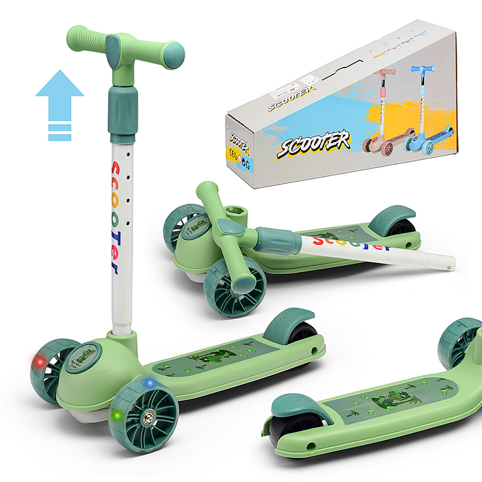 Самокат 3-х кол., зелёный, светящиеся колёса, PVC, ABEC 7, в коробке