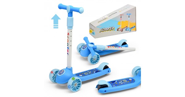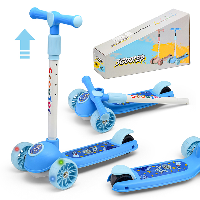 Самокат 3-х кол., синий, светящиеся колёса, PVC, ABEC 7, в коробке