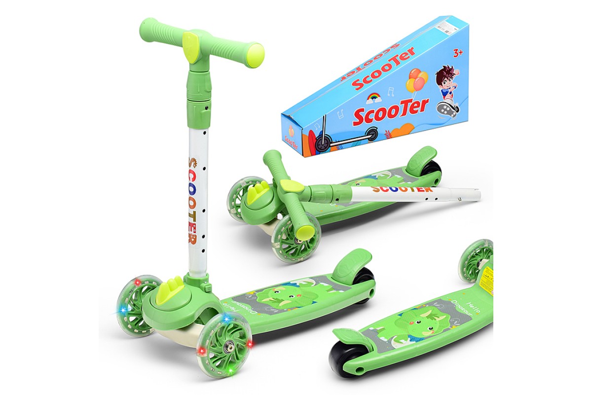 Самокат 3-х кол., зеленый, PU, в коробке