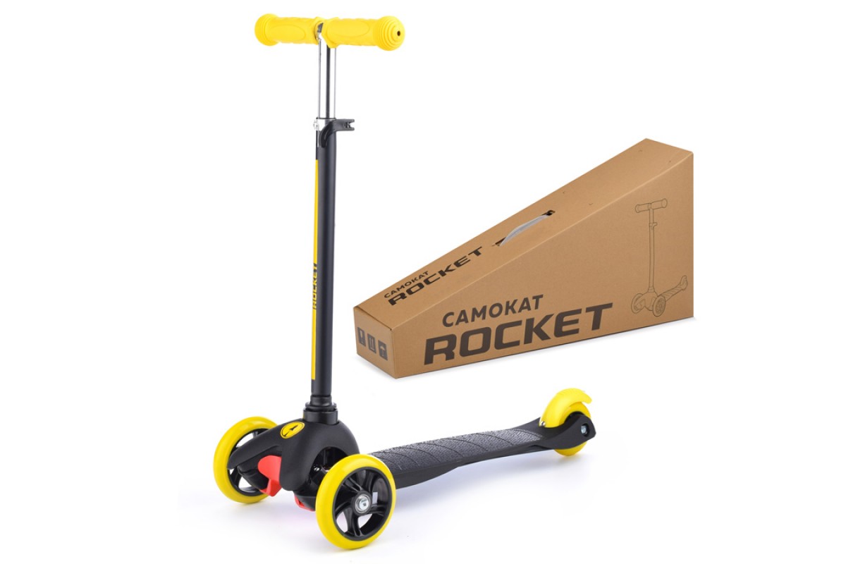 Самокат трёхколёсный ROCKET колёса PU, цвет желто-черный