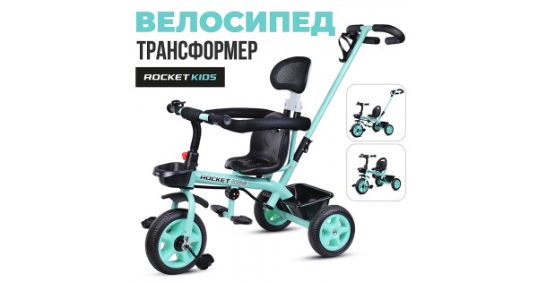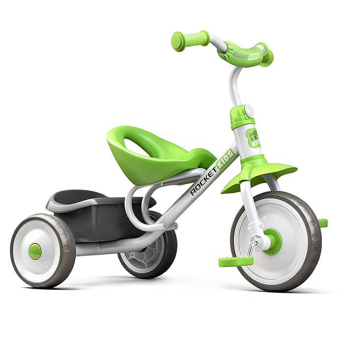 Велосипед трехколесный Rocket, колеса EVA 9"/7", цвет белый/зеленый