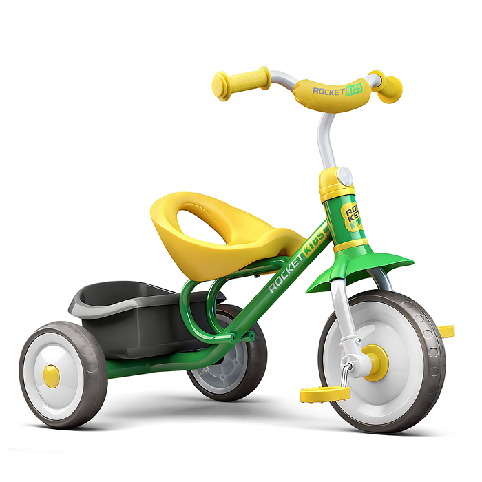 Велосипед трехколесный Rocket, колеса EVA 9"/7", цвет зеленый/желтый