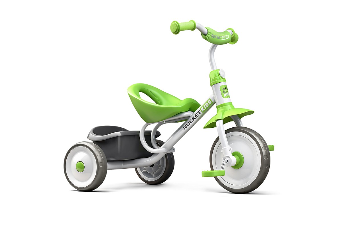 Велосипед трехколесный Rocket, колеса EVA 9"/7", цвет белый/зеленый