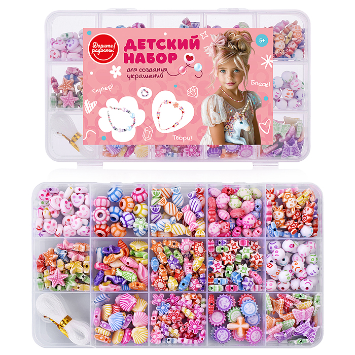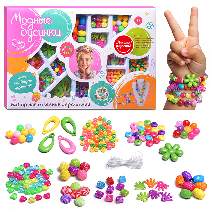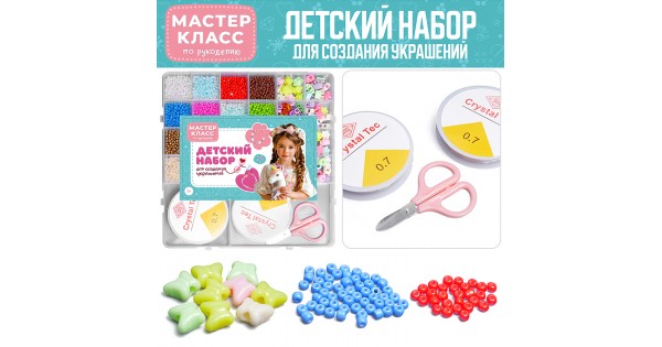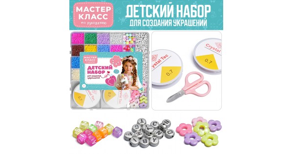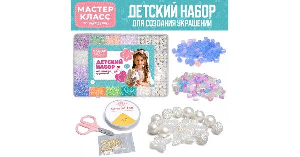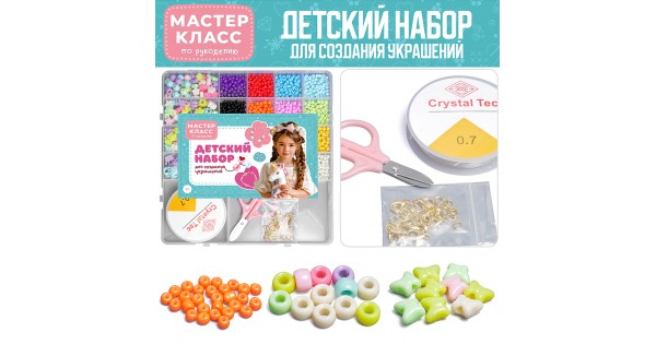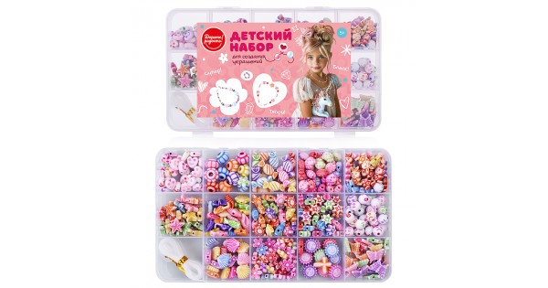 Бижутерия, бусы и украшения для детского творчества собраны здесь. С помощью предлагаемых наборов можно собрать необычные украшения, показать их друзьям, знакомым, и удивить их ручной изящной работой.