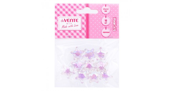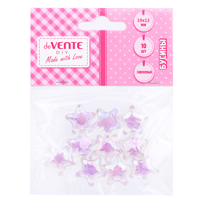 Бусины декоративные "Звездочки" пластиковые, 19x12 мм, 10 шт, в пластиковом пакете с блистерным подвесом, сиреневые
