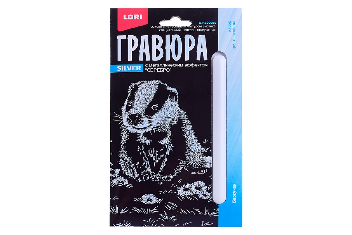 Гравюра 10*15. Детёныши "Барсучок" (серебро)