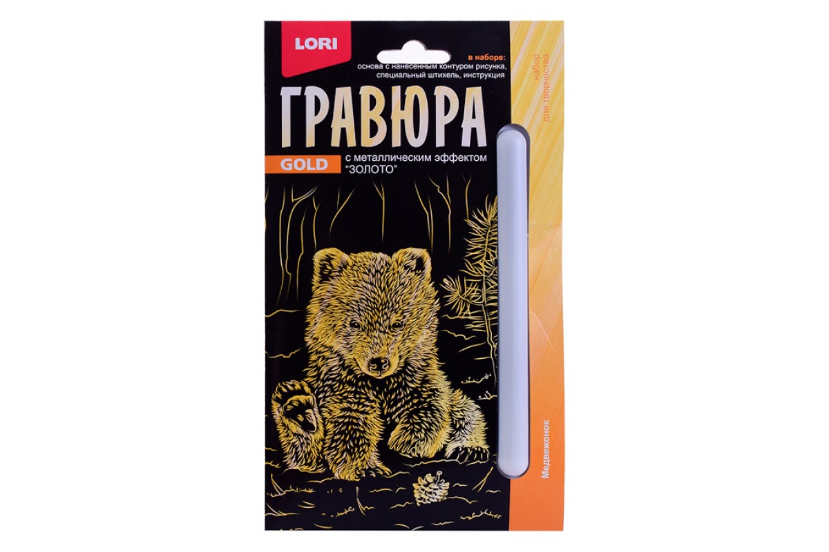 Гравюра 10*15. Детёныши "Медвежонок" (золото)