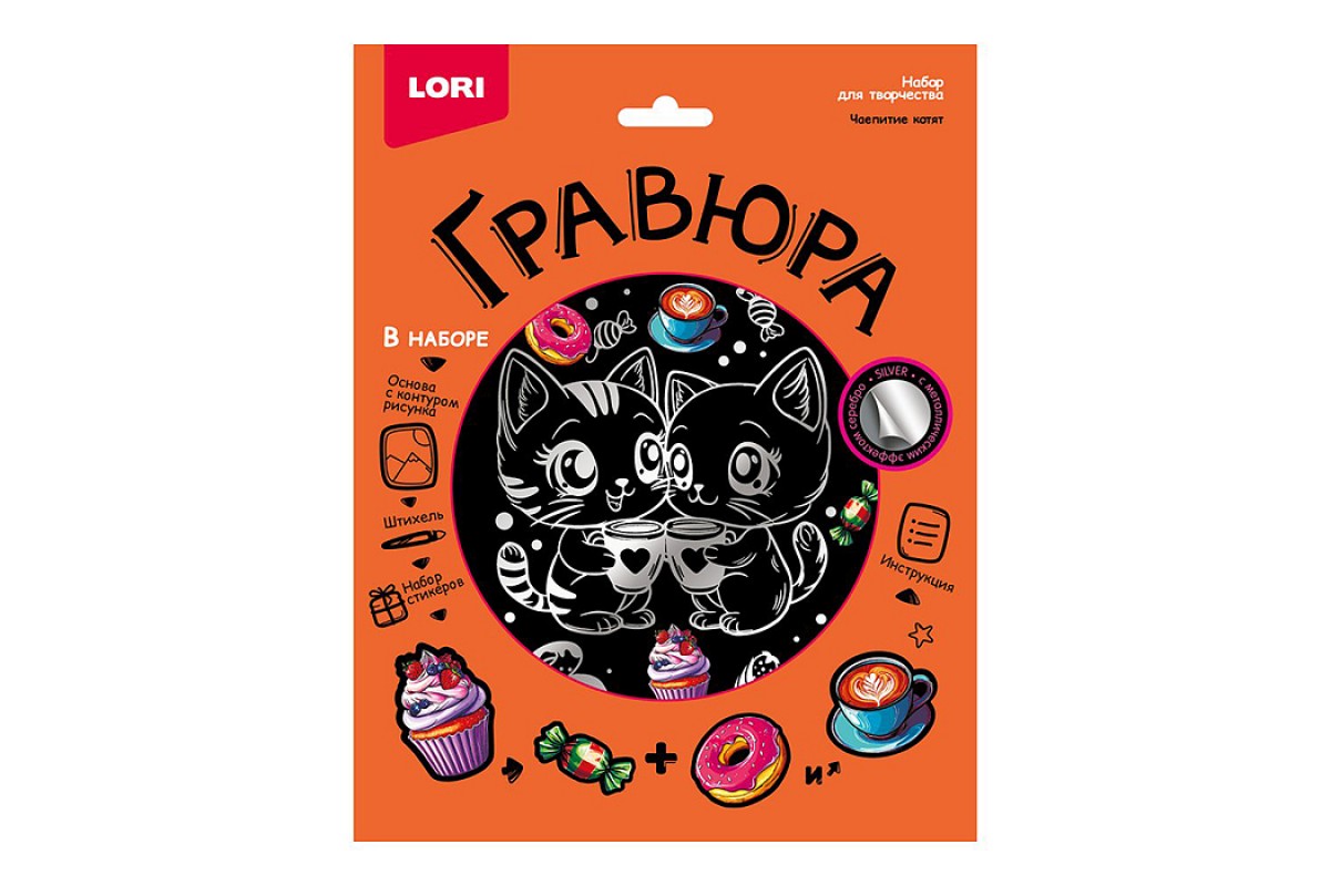 Гравюра 18*24. "Чаепитие котят" (серебро)
