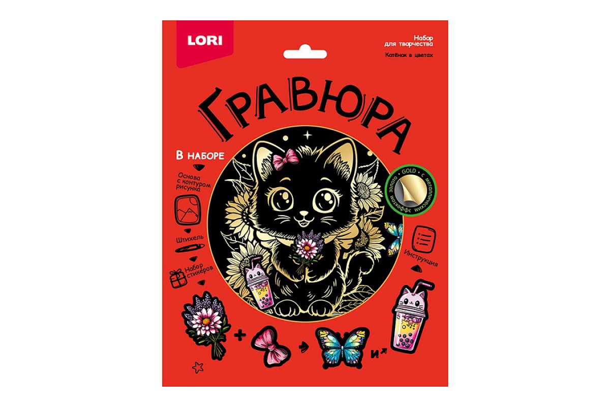 Гравюра 18*24 "Котёнок в цветах" (золото)