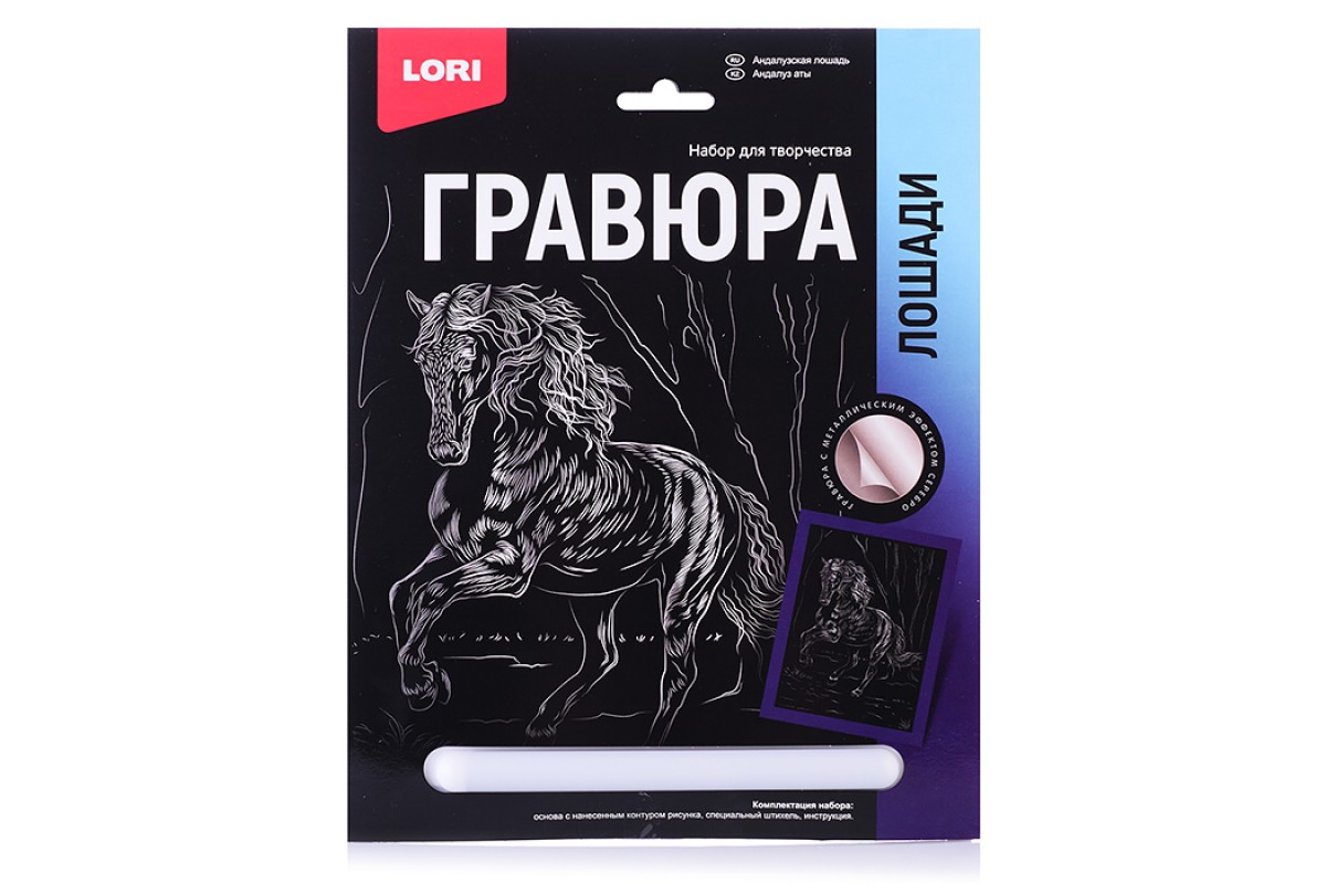 Гравюра 18*24. Лошади "Андалузская лошадь" (серебро)