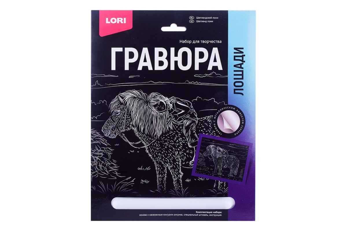 Гравюра 18*24. Лошади "Шетлендский пони" (серебро)