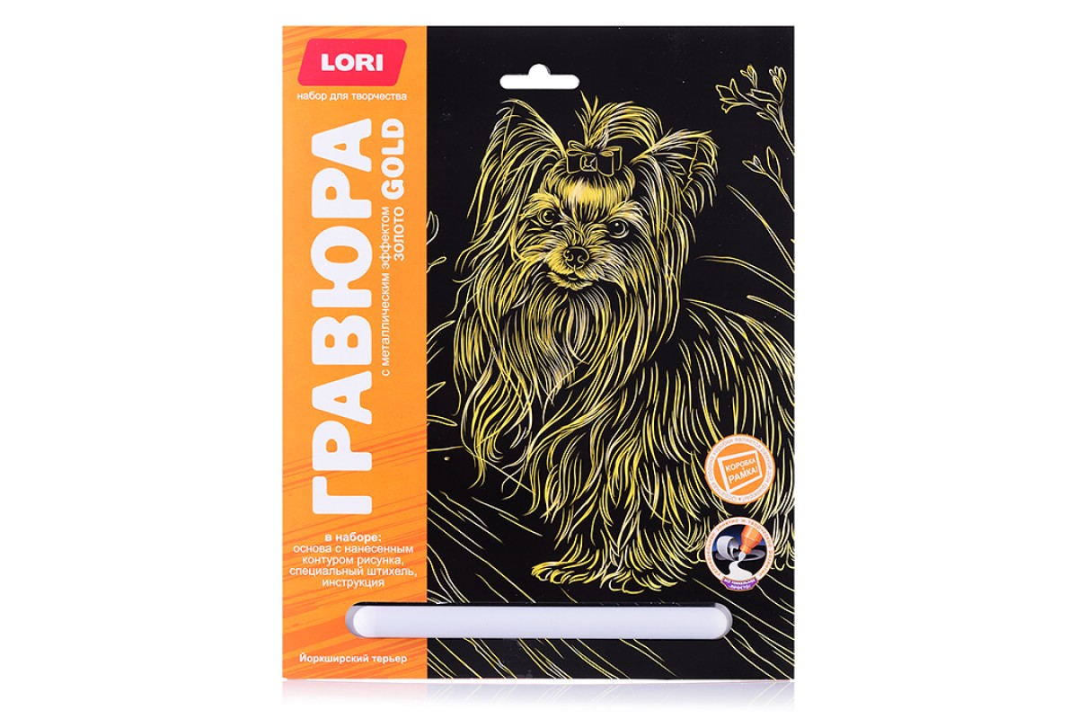Гравюра 18*24. Собаки "Йоркширский терьер" (золото)