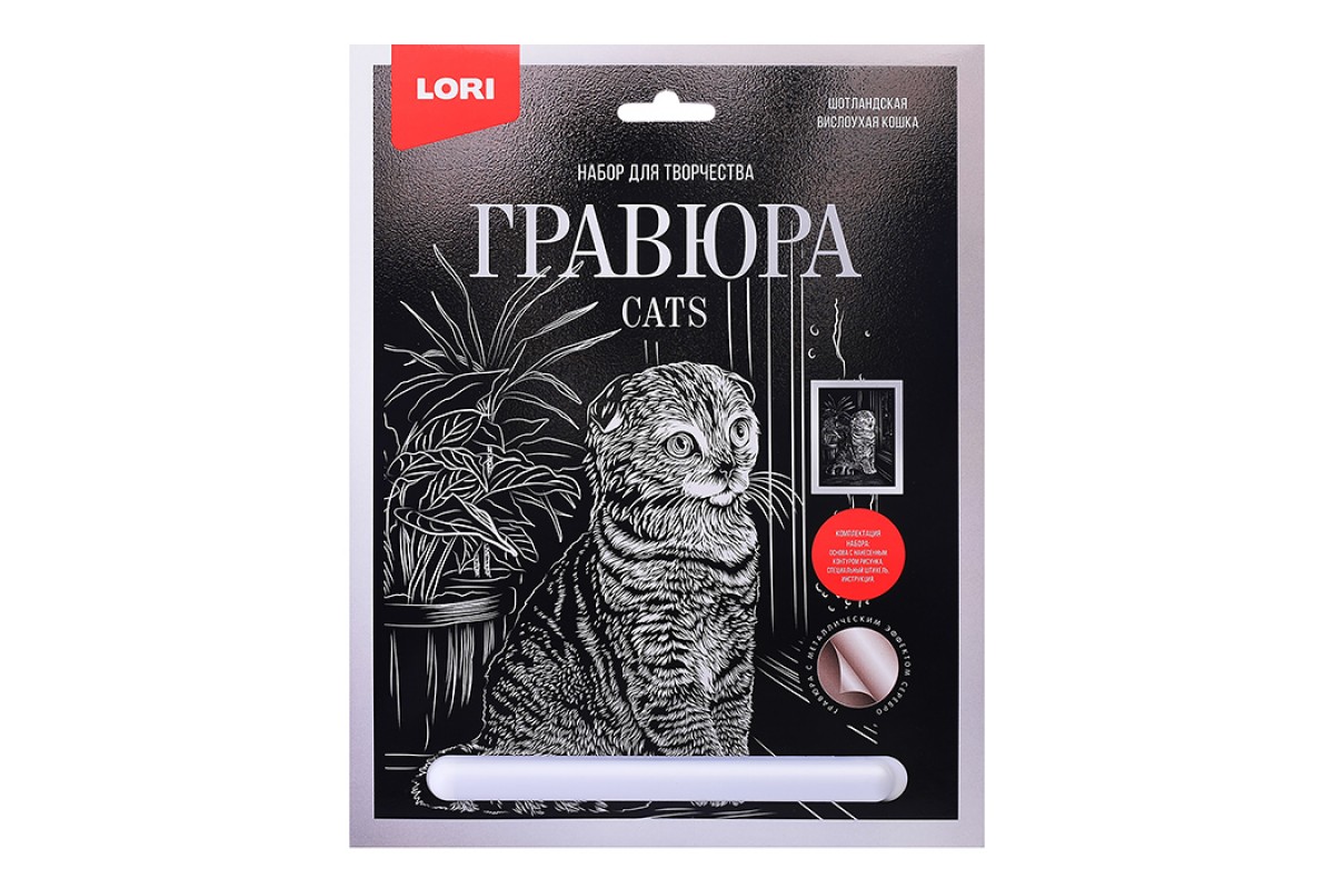 Гравюра большая с эффектом серебра "Шотландская вислоухая"