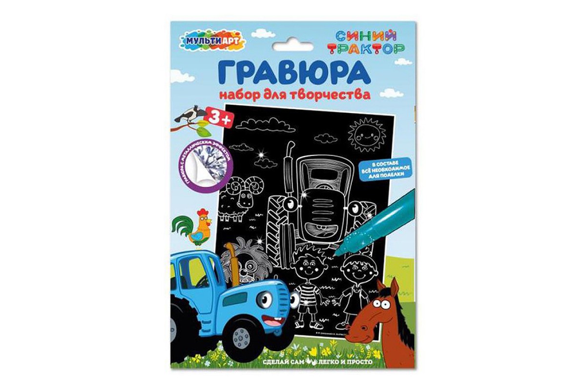 Гравюра серебро 18*24 см. "Синий трактор"